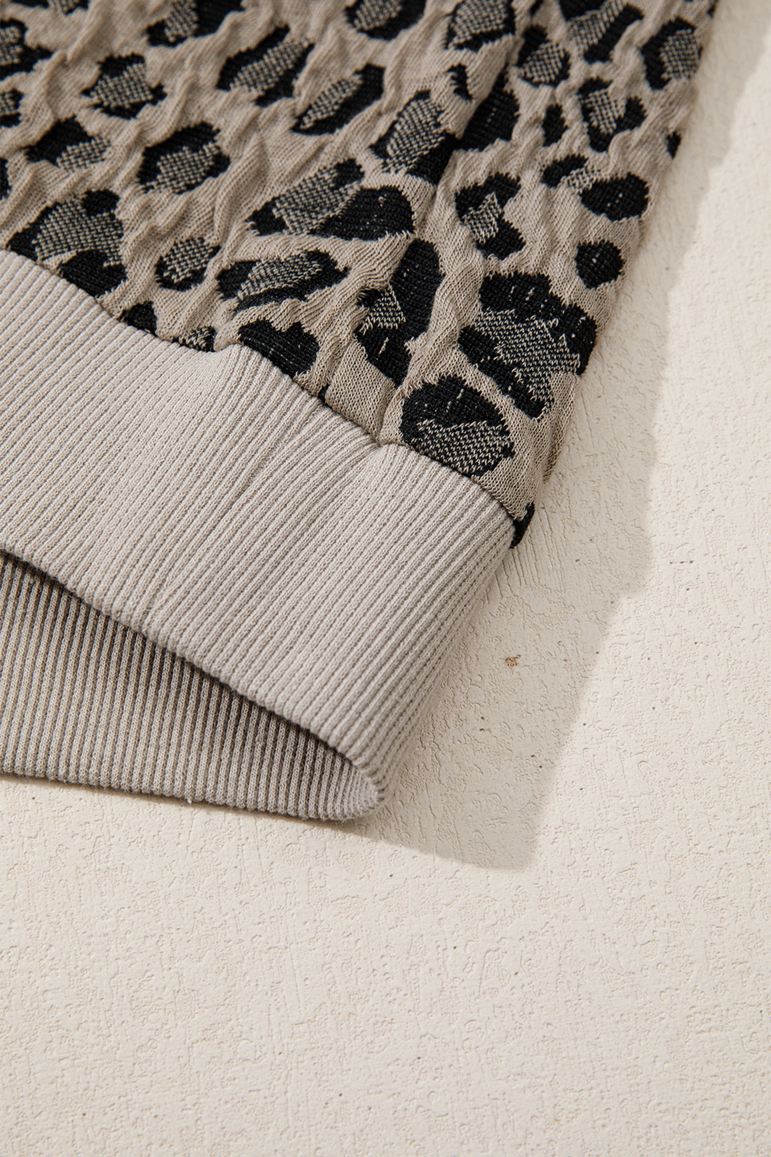 Featuring a textured leopard and ribbed color block patchwork.