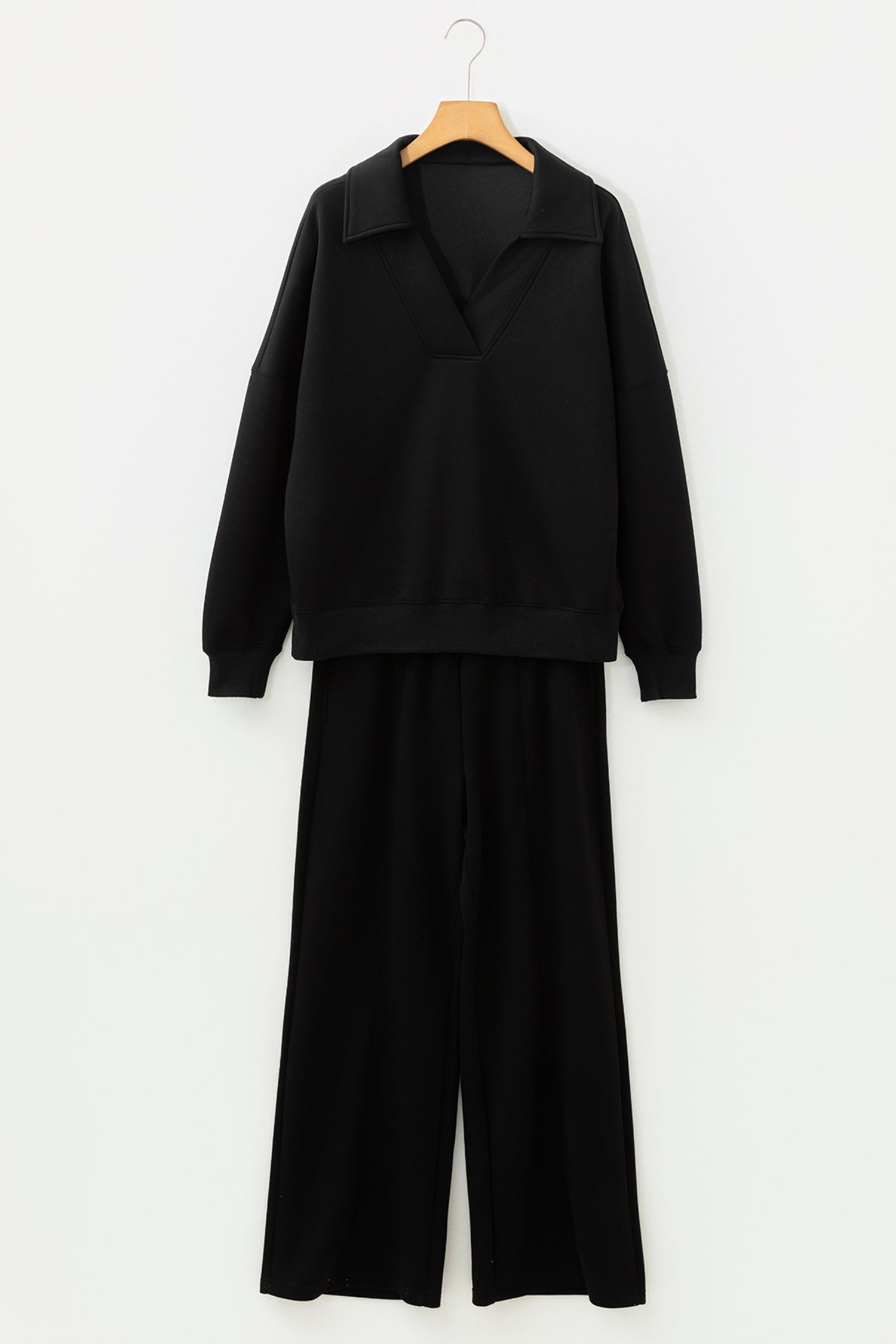 Bristol Black Collared V Neck Pullover Sweatshirt Sweatpants Set