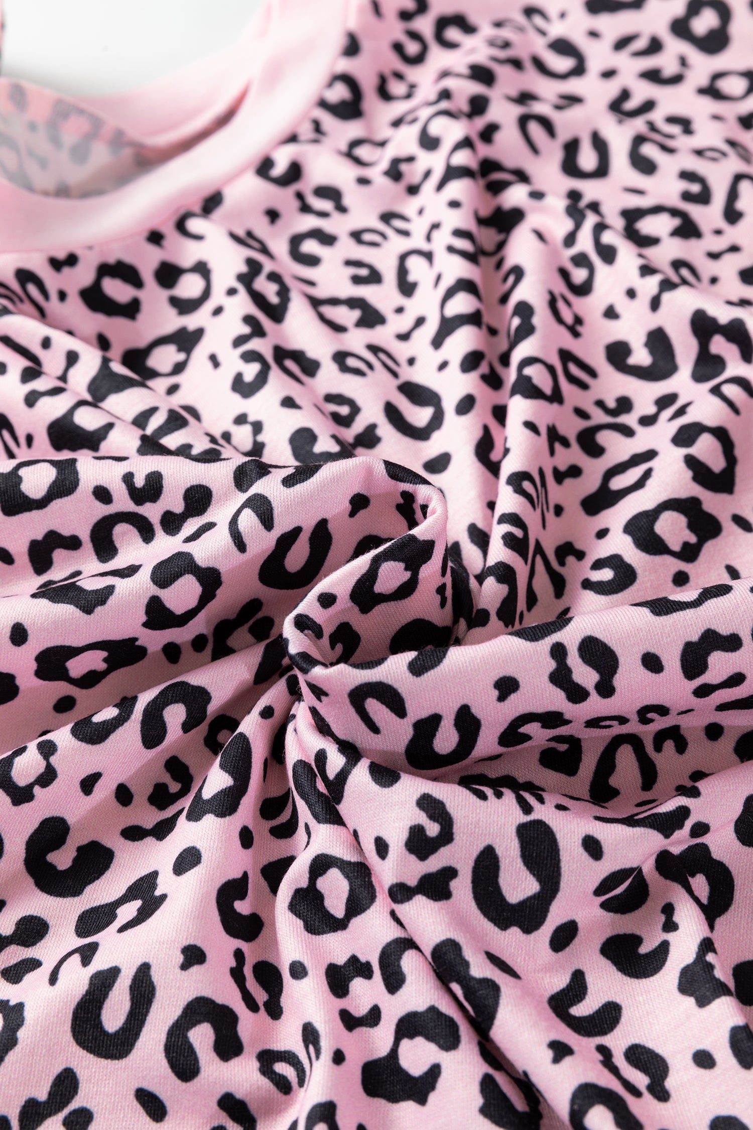 Pink Leopard Striped Patchwork Side Slit Loose Short Sleeve Top
